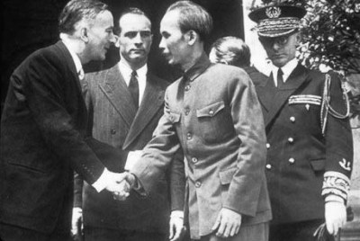 Thủ tướng Pháp Georges Bidault đón tiếp Hồ Chí Minh hồi tháng 7/1946.