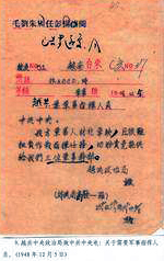 Điện ngày 05/12/1948 của Bộ Chính trị TW Đảng Cộng sản Đông Dương gửi TW Đảng Cộng sản Trung Quốc đề nghị cử 03 cán bộ quân sự sang giúp. (Lưu trữ Bảo tang Hồ Chí Minh).