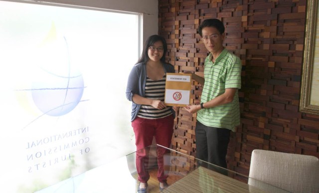 Đại diện của ICJ – Leong Tsu Quin tiếp nhận
