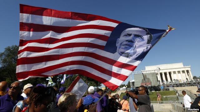 Hàng chục ngàn người tập họp gần Đài Kỷ niệm Tổng thống Lincoln tại Washington, nơi Mục sư Martin Luther King đọc bài diễn văn nổi tiếng “Tôi có một ước mơ” cách đây 50 năm.