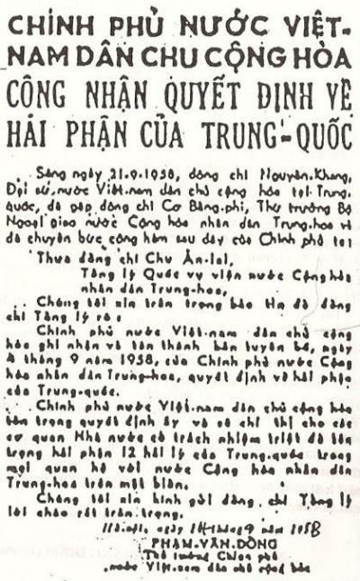 II.b. Công hàm 1958 của Phạm Văn Đồng: