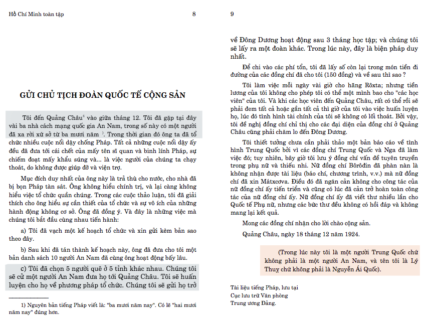HCM Toàn tập, Tập 2, trang 5, 6, 7 Nhà xuất bản Chính Trị Quốc Gia Hà Nội – 2000.