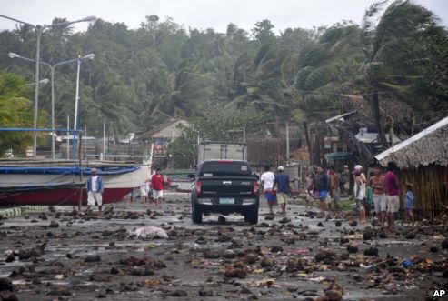 Trận bão đã thổi vào đất liền lên các đảo Leyte và Samar.