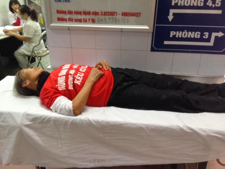 Chúng tôi biết tin có một bà lão tên là Nguyễn Thị Chức bị chúng lôi kéo và ngất. Hiện tại nằm ở bệnh viện Saint Paul. Họ băt chúng tôi vào, dùng vũ lực cướp máy ảnh đồ đạc của chúng tôi. Sau khi xoá được những hình ảnh chúng tôi ghi lại về dân oan sáng nay thì họ bảo chúng tôi về.
