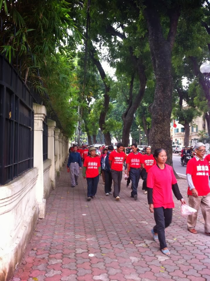 Châu Văn Thi – (Danlambao) – Tin từ các nhà hoạt động Trương Dũng, Gió Lang Thang, Nguyễn Lân Thắng… cho biết sáng ngày 15/11/2013 bà con dân oan Dương Nội đến nộp đơn tại trụ sở tiếp công dân của văn phòng trung ương đảng. Họ diễu hành trên các tuyến phố với áo phông đỏ quen thuộc, khi đến phố Văn Miếu thì lực lượng công an đã ập vào bắt bà con lên xe, trong đó có các anh Lê Thiện Nhân, Trịnh Anh Tuấn, và Nguyễn Kim.