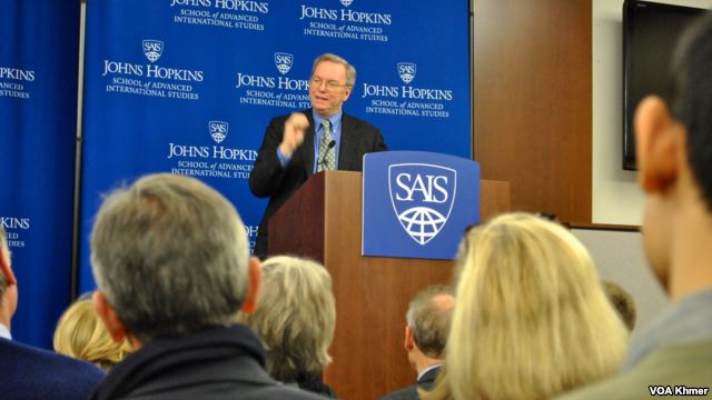 Phát biểu tại đại học Johns Hopkins Hoa Kỳ hôm 21/11, ông Eric Schmidt, người điều hành công cụ tìm kiếm trên mạng lớn nhất thế giới nhấn mạnh đến việc chấm dứt sự kiểm duyệt mạng tại các nước hạn chế quyền tự do ngôn luận bằng việc kết nối mọi người với mạng internet và bảo vệ sự thông tin liên lạc tránh bị theo dõi.