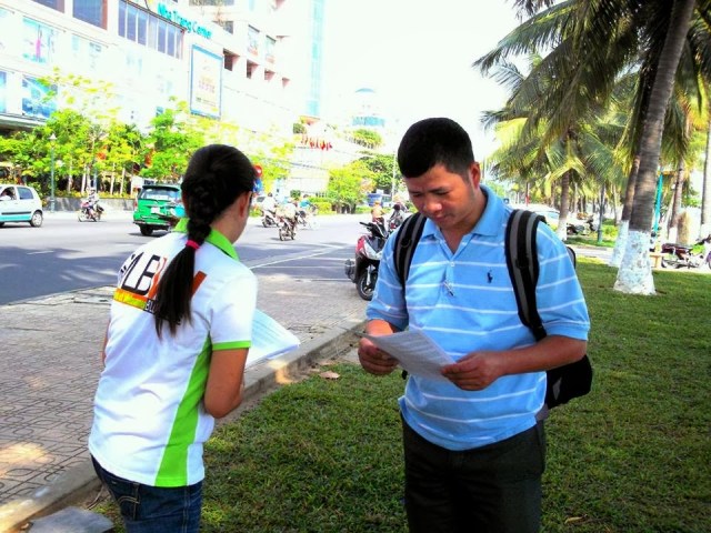 Mạng Lưới Blogger Việt Nam – Buổi sáng thứ bảy, 7/12, một số blogger ở Nha Trang đã có hoạt động kỷ niệm Ngày Quốc tế Nhân quyền năm nay theo cách của riêng mình: Chia sẻ và phân phát tài liệu về nhân quyền cho người dân.