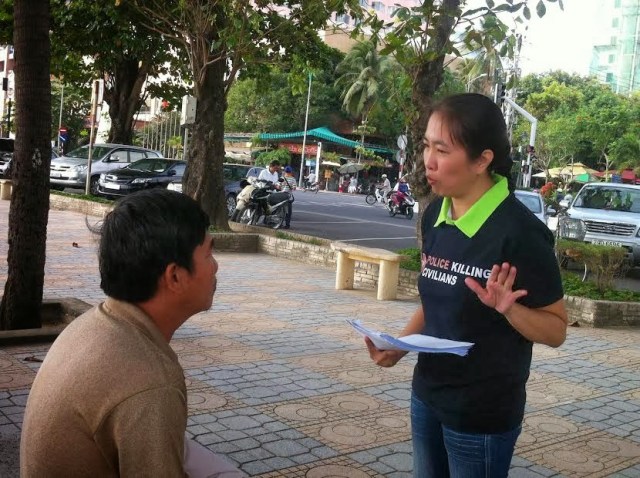 Phát tài liệu nhân quyền tại Công viên bờ biển Trần Phú