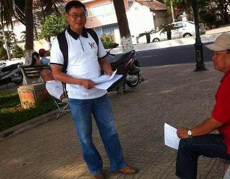 Phát tài liệu nhân quyền tại Công viên bờ biển Trần Phú
