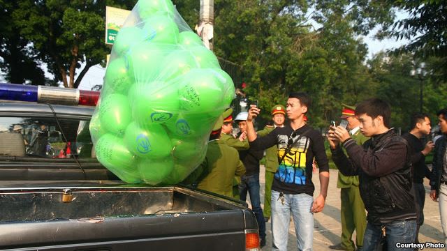 Tại một sự kiện khác hôm Chủ nhật, hơn 100 người đã tụ họp gần một công viên ở Hà Nội để phát bong bóng in những khẩu hiệu đòi hỏi chính phủ tôn trọng nhân quyền. Tuy nhiên, blogger Nguyễn Lân Thắng cho biết cuộc tụ họp đã nhanh chóng bị công an cảnh sát giải tán.