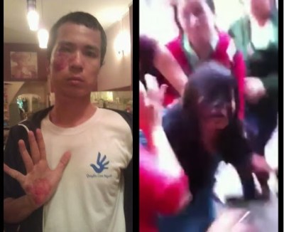1. Hoàng Văn Dũng (Hoàng Dũng CDVN) bị đánh nhiều lần vào mặt, rách mí mắt.