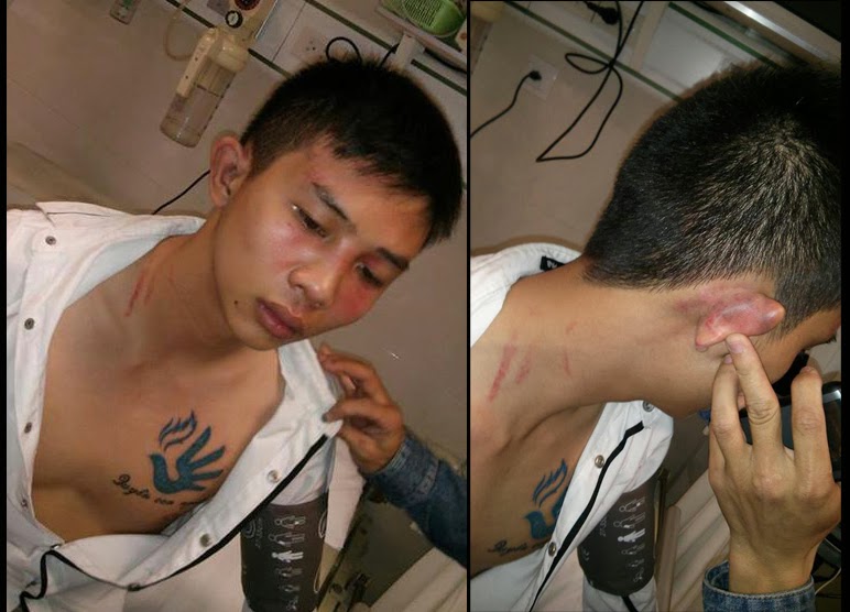 1. Hoàng Văn Dũng (Hoàng Dũng CDVN) bị đánh nhiều lần vào mặt, rách mí mắt.