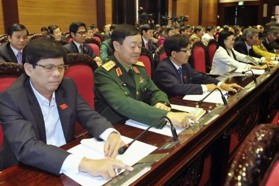 Các ĐBQH ấn nút thông qua Hiến pháp mới trong phiên họp ngày 28.11.2013 – Ảnh: REUTERS/STRINGERThứ Sáu vừa qua, Quốc hội do ĐCSVN khuynh loát đã thông qua Hiến pháp 1992 sửa đổi; bất chấp một chiến dịch tham vấn công chúng, bản Hiến pháp mới vẫn củng cố quyền lực của đảng giữa lúc sự bất mãn đang diễn ra âm ỉ trong dân chúng bởi cách thức đảng xử lý tranh chấp đất đai, tham nhũng cũng như điều hành một nền kinh tế chìm ngập trong khối nợ xấu của các DNNN.