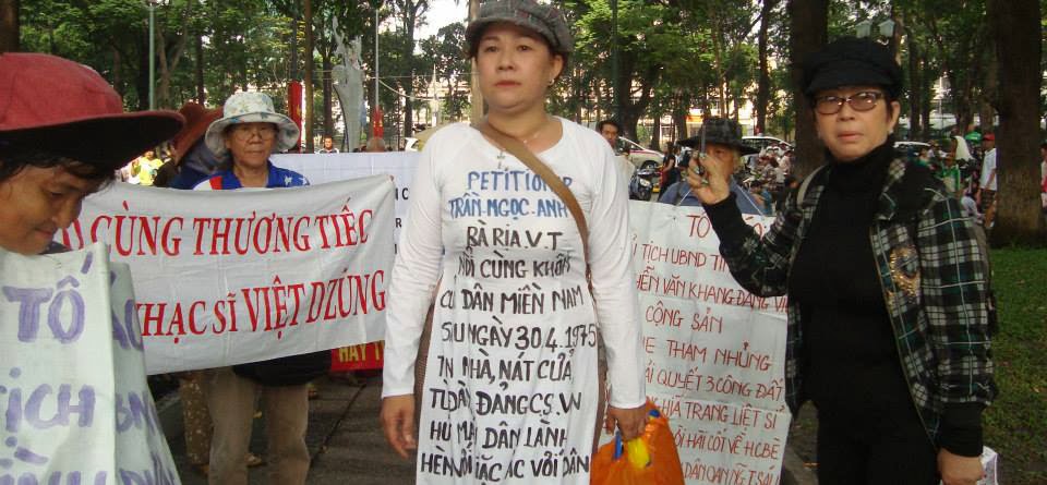 CTV Danlambao – Cuộc biểu tình sáng ngày 1/1/2014 của dân oan các tỉnh miền Nam đã nhanh chóng bị côn an đàn áp thô bạo, chị Trần Ngọc Anh bị đánh trọng thương phải nhập viện cấp cứu. Trong đoạn video dân oan biểu tình đã được phổ biến trên Danlambao, chị Ngọc Anh là người phụ nữ đi đầu, mặc áo dài trắng in dòng chữ “Trần Ngọc Anh – Bà Rịa Vũng Tàu: Nỗi cùng khổ của dân miền Nam sau ngày 30/4/1975. Đảng cộng sản Việt Nam hút máu dân lành – Hèn với giặc, ác với dân”.