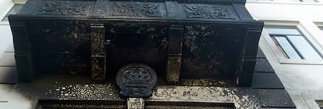 Vụ đốt nhắm vào cửa chính tòa tổng lãnh sự Trung Quốc. (Hình: AP/Photo)