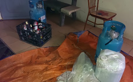 Cùng lúc đó, các cảnh sát khác cũng nhanh chóng áp sát, khống chế đối tượng Tùng trên nóc nhà. Tại hiện trường, cơ quan công an thu giữ 11 bình gas mini buộc với vỏ chai bia Hà Nội, bên trong vỏ chai có chứa xăng và có miếng vải ở miệng chai; 2 bình gas to loại 13kg, 1 can nhựa bên trong còn 16 lít xăng…