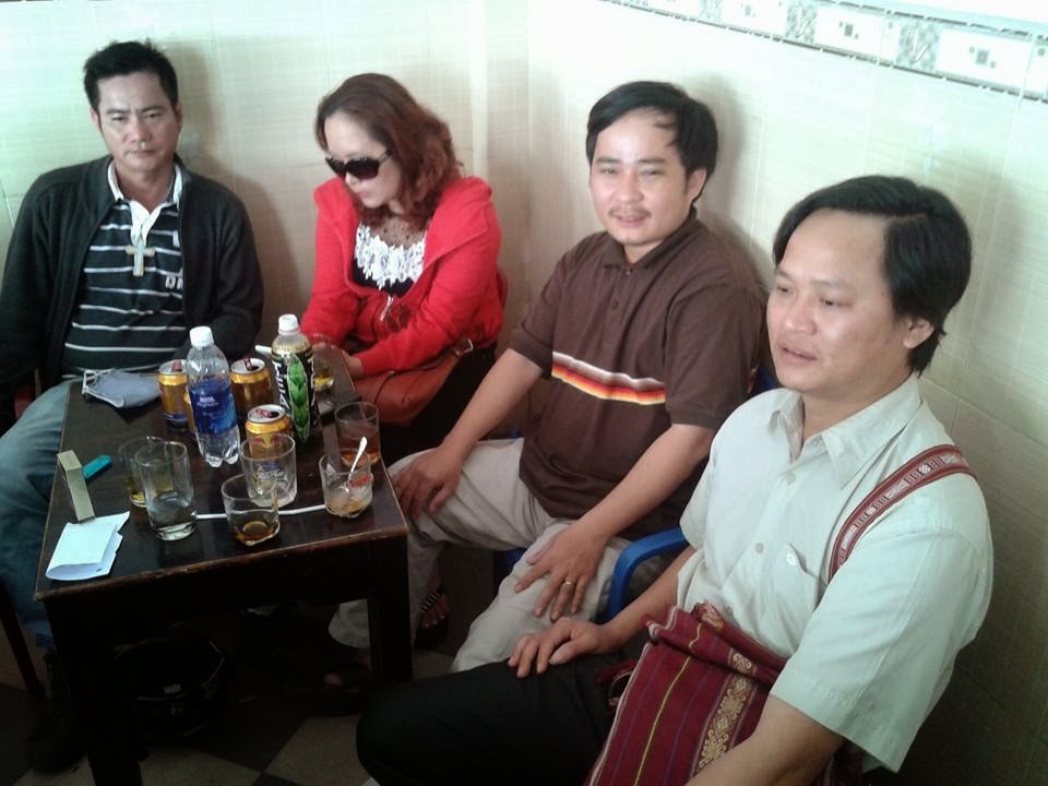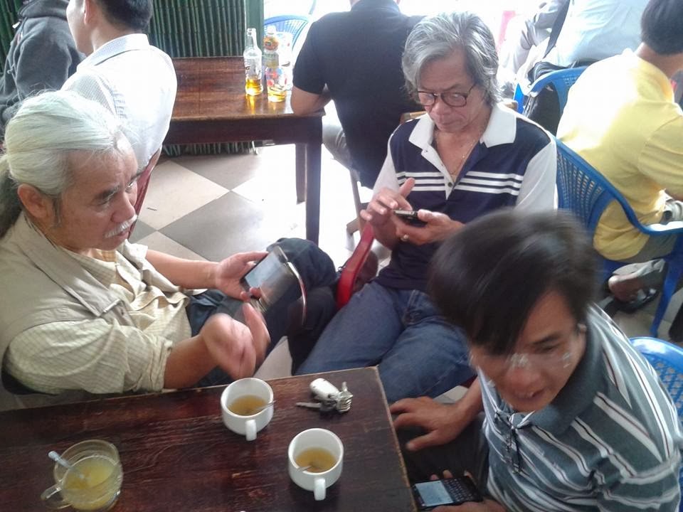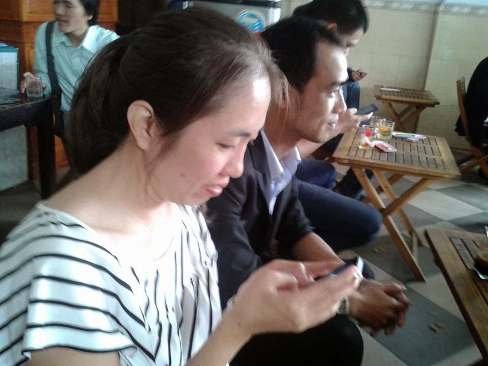 Vì không được vào tham dự phiên toà xét xử “công khai”, bạn bè đến ủng hộ blogger Trương Duy Nhất phải ngồi ở ngoài quán cà phê (ảnh FB Lê Hải):