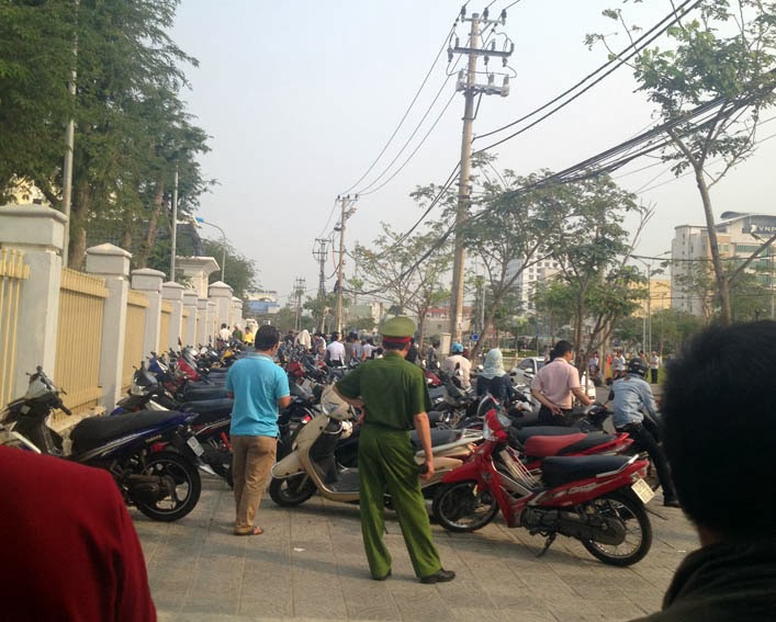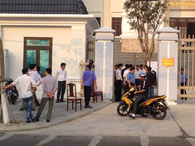 Theo quan sát của CTV Danlambao khu vực bên ngoài tòa án đông bất thường bởi lực lượng xe ôm tăng cường và công an sắc phục. Phiên tòa được thông báo xét xử công khai nhưng không ai được vào dù có thẻ nhà báo.