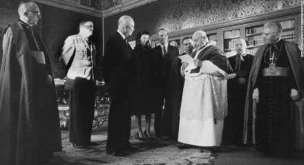 Popes and U.S. presidents « Previous Next » President Dwight D. Eisenhower, third from left, meets with Pope John XXIII at the Vatican in 1959. Every U.S. president since Eisenhower has had a formal audience with the pope.