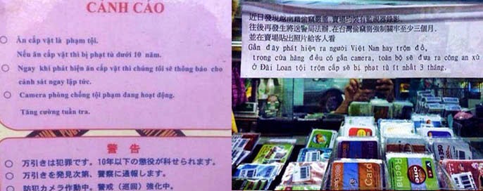 Không chỉ ở Nhật Bản, mà các nước và vùng lãnh thổ khác như Thái Lan, Đài Loan cũng đều có biển cảnh báo về thói trộm cắp vặt của người Việt.