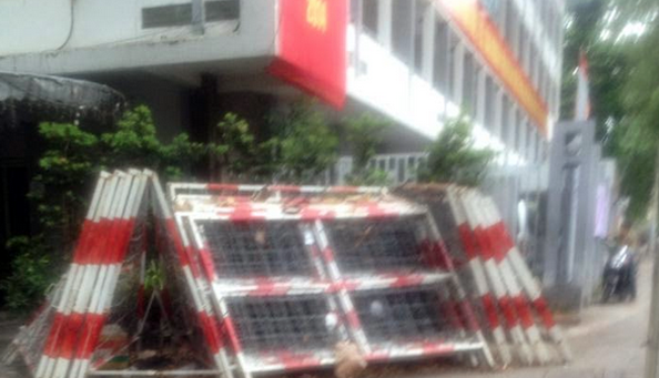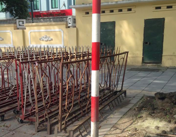 Hàng rào dựng sẵn gần khu vực đại sứ quán TQ