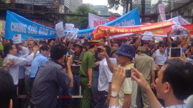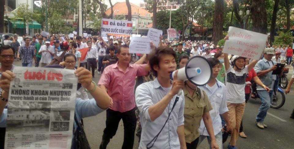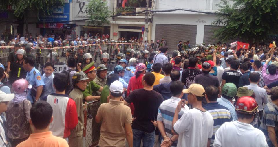 Lúc 09:30 phút sáng: Tại Sài Gòn, sau khi bị hàng rào an ninh dày đặc ngăn chặn tiếp cận tòa Tổng lãnh sự quán Trung Quốc, đoàn biểu tình đã quay ngược lại tuần hành hướng về khu vực nhà văn hóa Thanh Niên. Nhiều khẩu hiệu và tiếng hô ‘Tự do cho người yêu nước’ vang lên trong cuộc biểu tình.