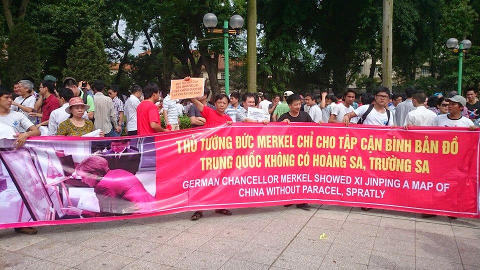 Tại Hà Nội: Ước tính có khoảng 1000 người đã tập trung hô khẩu hiệu trước đại sứ quán Trung Quốc.