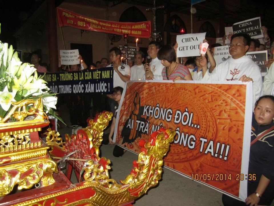 Kết thúc Thánh lễ, không khí chống giặc ngoại xâm đã nóng lên, một số người tham dự đã hô to khẩu hiệu “đả đảo Trung Quốc xâm lược”.