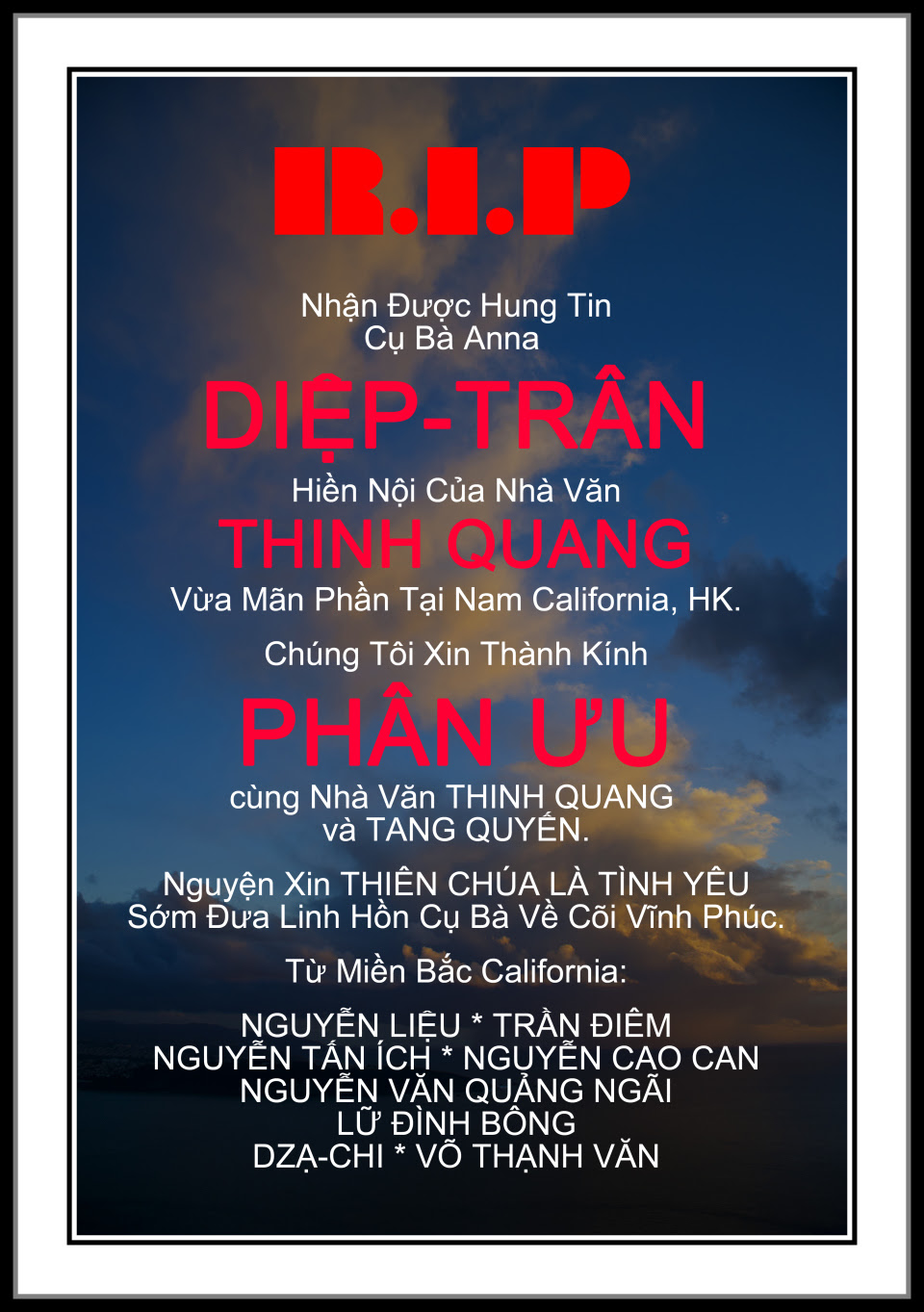Xin gửi lời chia buồn tới gia đình giáo sư, ông quận trưởng Mộ Đức, trưởng đoàn bình định nông thôn Nguyễn Liệu