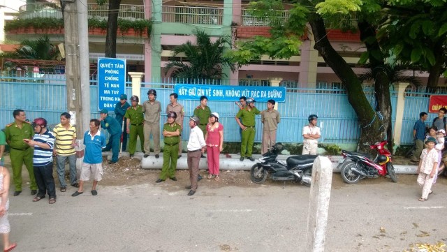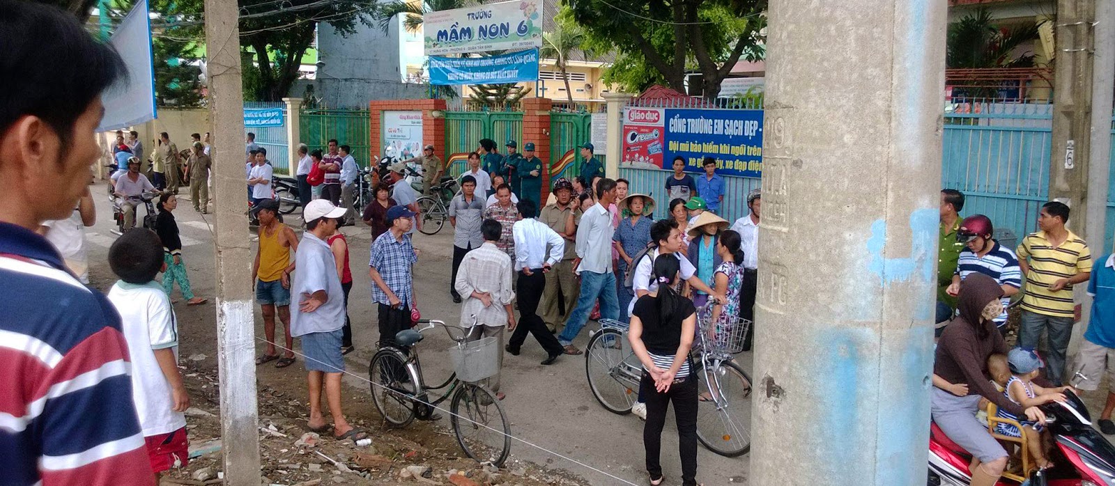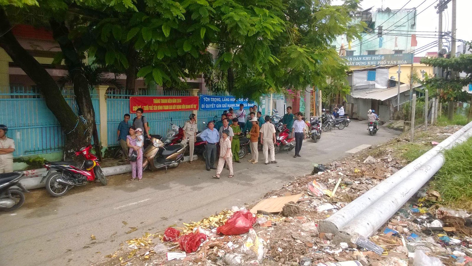 Tuy nhiên, khi đang dọn dẹp thì bất ngờ giới chức địa phương đổ quân kéo đến phá hai cột trụ bê-tông. Bà con nhân dân lập tức phản đối, yêu cầu phải lập biên bản nhưng không được đáp ứng.