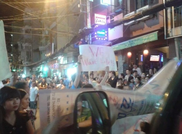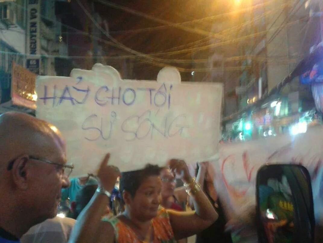 Luật là vậy, nhưng khu vực đặc biệt của Sài Gòn về đêm này, nhậu ngồi trong nhà sao… zui được. Không ngồi yên như mọi khi bị hốt, lần này các hộ kinh doanh tràn xuống đường, giơ cao các biểu ngữ viết vội: “Chúng tôi muốn sống!”, “Hãy cho tôi sự sống!”, “We want life”…