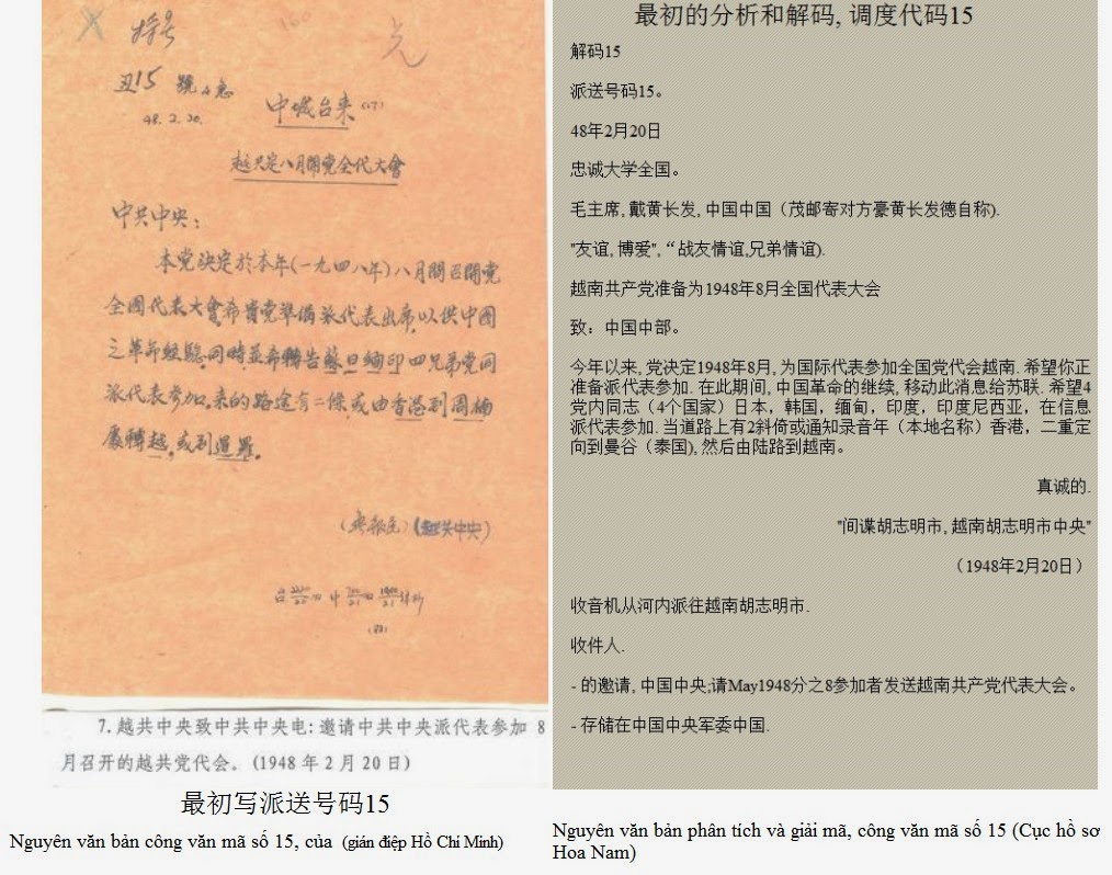 Huỳnh Tâm (Danlambao) – “Chúng tôi, sao y bản gốc và đính kèm những tài liệu đích thực của “Bác”, theo “Công văn mã số 15” (派遣15号), vào ngày 20 tháng 2 năm 1948: “Bác” đã công bố trước cộng sản đảng quốc tế. “…Hồ Chí Minh gián điệp Trung Cộng Quốc với tư cách Trung ương Việt Minh”. (胡志明为越南中部, 被中国间谍的心理活动). Công văn này được lưu tại Trung Cộng Quốc, Liện Xô, Nhật Bổn, Miến Điện, Ấn Độ, Nam Dương và Đảng của “Bác”.