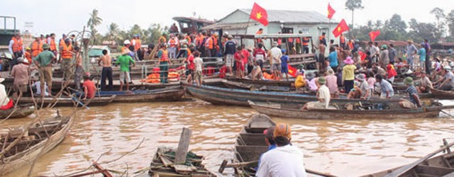 Người dân bao vây, cản trở lực lượng cưỡng chế – Ảnh: Lê LâmLê Lâm (Thanh Niên Online) – Sáng qua 2.8, hàng trăm hộ dân nuôi cá bè trên sông Cái (còn gọi là làng cá bè Tân Mai, nằm trên một nhánh sông Đồng Nai, đoạn qua TP. Biên Hòa, Đồng Nai) đã dùng ghe nhỏ dàn ra sông để chống đoàn cưỡng chế.