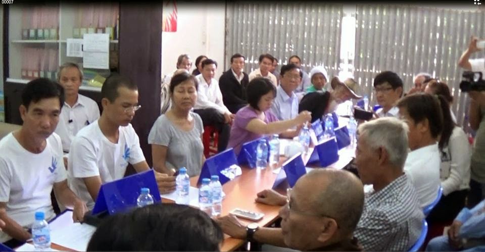 MLBVN – Sài Gòn – ngày 05/08/2014, tại nhà thờ Dòng Chúa Cứu Thế – Kỳ Đồng đã diễn ra buổi họp mặt định kỳ hàng tháng của các nhóm xã hội dân sự. Mặc dù, từ ngày 04/08, nhiều cá nhân của các hội nhóm đã bị lực lượng an ninh canh nhà và gửi giấy mời, giấy triệu tập làm việc vào sáng ngày 05/08 nhưng buổi họp vẫn diễn ra với sự góp mặt của 15 hội nhóm xã hội dân sự, trong đó có bác sĩ Nguyễn Đan Quế, Hòa thượng Thích Không Tánh, nhà giáo Trần Văn Huỳnh (cha của Tù nhân lương tâm Trần Huỳnh Duy Thức), nhạc sĩ Tạ Trí Hải, chị Dương Thị Tân (vợ blogger Điếu Cày), Đỗ Thị Minh Hạnh,…