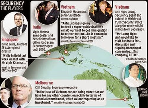 vì dính líu đến Securency hối lộ cho quan chức của Việt Nam (báo chí Australia)