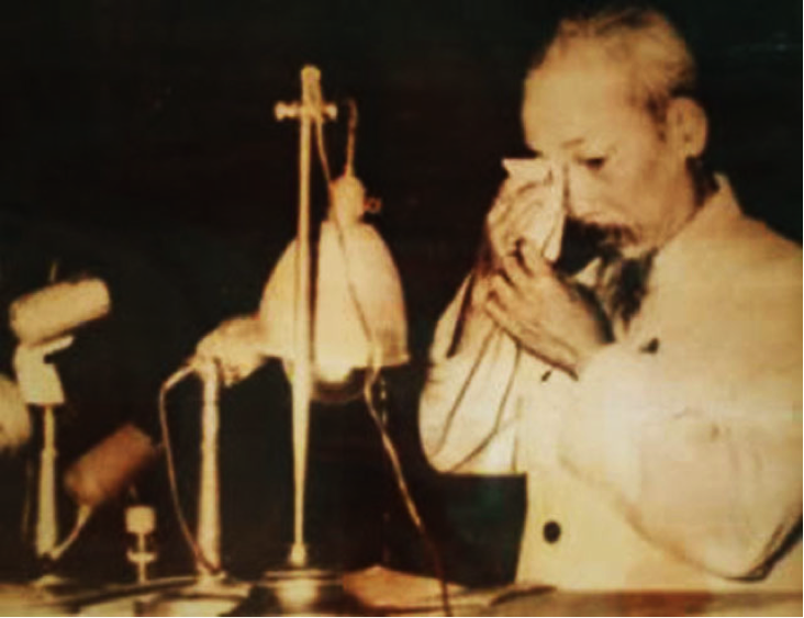 Hình 1: Hồ Chí Minh chậm mắt trong diễn văn nhận lỗi về cải cách ruộng đất.