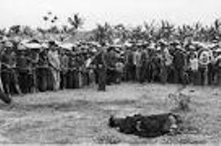Một tiếng la lớn “ Đây tên địa chủ ác ôn !.” Không khí buồn tẻ yên lặng bỗng ồn ào nhốn nháo. Đám người ngồi sát sân trường phần đông thanh thiếu niên ồn ào đứng dậy. Những tiếng hô lớn đả đảo bọn địa chủ phong kiến bóc lột, đả đảo bọn địa chủ bán nước, đảng lao động muôn năm , Hồ chủ tịch muôn năm…tiếng hô, tiếng hét, vang dội cả khu trường học. Người ta chen lấn nhìn vào sân trường, nơi đấu trường, nhưng chưa thấy gì hết.