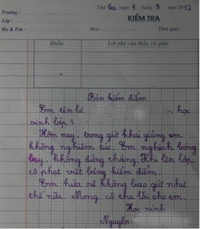 Bản kiểm điểm của học sinh lớp 4 khiến ngành giáo dục Việt Nam phải suy ngẫm
