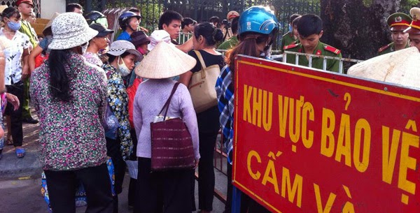 Lực lượng công an sắc phục đủ loại đã lập tức được huy động, dựng hàng rào cách trụ sở tòa án khoảng 50 mét. Hành động này càng khiến những nghi ngờ của người dân là có cơ sở.