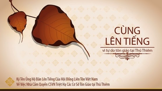 Hội Đồng Liên Tôn Việt Nam mong mỏi quý đồng bào trong và ngoài nước, quý đoàn thể, chính đảng, cộng đồng khắp nơi tích cực góp phần bảo vệ các sơ sở tôn giáo tại Thủ Thiêm bằng cách ký tên ủng hộ Bản Lên Tiếng của Hội Đồng Liên Tôn Việt Nam.