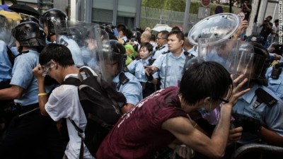 Từ Bắc Kinh, lệnh được ban hành là mọi cuộc tuần hành, biểu tình phản đối của người dân Hongkong được xem là bất hợp pháp. Cảnh sát dùng khói cay, hơi tiêu và dùi cui để trấn áp người biểu tình. Cùng lúc, một thủ thuật quen thuộc được thấy ở Việt Nam: mật vụ giả dạng thường dân trà trộn vào đoàn biểu tình, lực lượng an ninh sắc phục lẫn thường phục cô lập những thành phần nòng cốt của phong trào và ngăn chận những kết nối của họ với đám đông quần chúng. Tính đến đêm Chủ nhật, theo cảnh sát đã có 38 người bị thương, hơn 150 người bị bắt giam, trong đó có Joshua Wong.