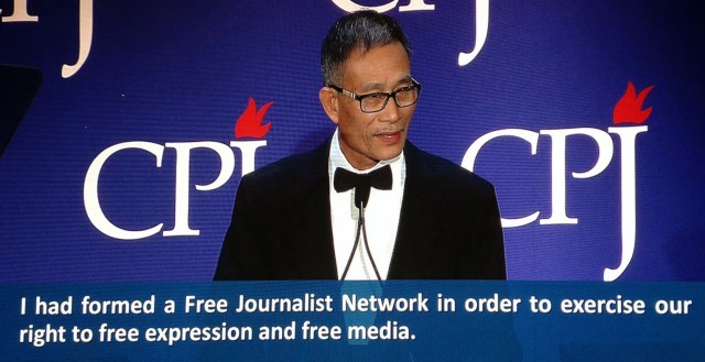 Điếu Cày phát biểu tại đêm dạ tiệc trao giải Tự Do Báo Chí Quốc Tế