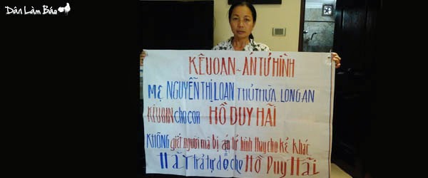 Ngày 25/11/2014 vừa qua, cán bộ Tòa án tỉnh Long An đến nhà tôi thông báo sắp thi hành án và nhắc gia đình cần kêu oan khẩn cấp cho Hồ Duy Hải trước khi quá trễ.