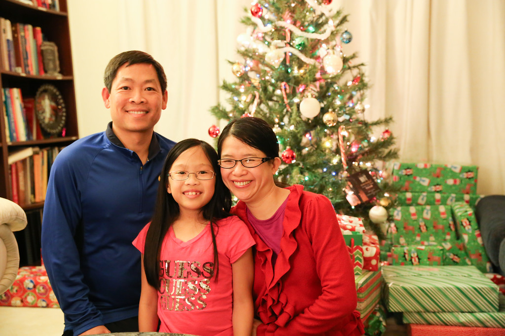 Đầy đủ gia đình của Quang Đức Thanh Tân và cháu gái áo trắng là Isabella.