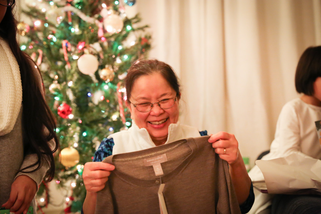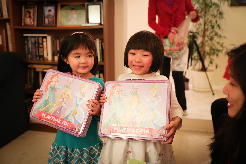 Hai đứa cháu cũng vào loại nhỏ nhất Anh Khuê, cháu nội, Isabella , cháu ngoại hớn hở nhận quà.