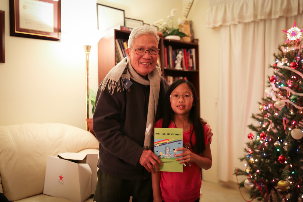 Đặc biệt Giáng sinh năm nay tại hạ nhận được món quà vô cùng quí báu vô cùng sãng khoái. Không riêng gì một mình tại hạ mà tất cả các người trong gia đình lớn nhỏ đều vui vẻ phấn khởi nhận món quà này. Đó là một tập truyện ngắn tiếng Anh, do nhà xuất bản Amazon in, với nhan đề Fountain of Stories của cháu Felicity 9 tuổi đang học lớp 4. Cuốn sách gồm 10 truyện ngắn, trên 30 trang in khỗ lớn. Hình bìa và tất cả hình ở trong, mỗi truyện có một hình, đều do tác giả tí hon này đãm nhận. Đúng là một đứa cháu rất tài hoa. Tôi vụt đứng dậy run run nhận quyển sách từ tay cháu với tất cả sự vui mừng mến phục một đứa cháu chưa tới mười tuổi mà đã có một công trình đáng khen ngợi.