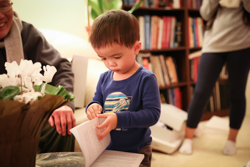 Anh Kiệt, đứa cháu nội hai tuổi, nhỏ nhất trong gia đình, và trân quý thương cưng nhất của ông bà nội cũng được tặng một cuốn sách của Félicity, và cũng bắt chước chị lật từng trang đọc dù mới nói bập bẹ, chưa biết chữ.