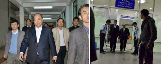 Báo Người Lao Động (lề đảng) lại đưa tin, gọi là “tin nóng từ Bệnh viện Đà Nẵng” rằng, “tối 13-1, Phó Thủ tướng Nguyễn Xuân Phúc đã đến Bệnh viện Đà Nẵng để thăm ông Nguyễn Bá Thanh”. Tin nóng quá, đốt cháy hết hình ảnh nên chẳng ai thấy hai nhà lãnh đạo đồng quê Quảng Nam đã ôm hôn nhau thắm thiết như thế nào? Làm sao chiêm ngưỡng được nước mắt ông Phúc nhỏ sa ròng ròng thì mới toại nguyện. Nhưng, trớ trêu thay, báo chí lề đảng dường như có ý chơi xỏ lãnh đạo, chỉ đưa hình ông Nguyễn Xuân Phúc uy nghi bước đi giữa đám tùy tùng thay vì lẽ ra phải là hình ông Phúc ôm chằm đồng chí đồng hương của ông mới đúng nghi thức và cả phong cách!