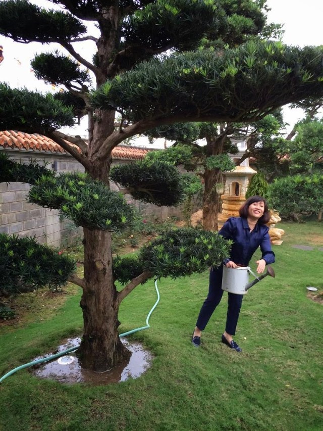 | Bà Phùng Nhật Hà và một góc sân vườn của căn biệt thự |