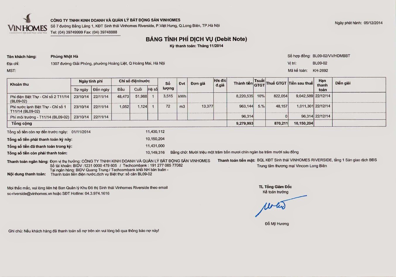 Ngày 7/5/2013, theo bản hợp đồng số BL09-02/VV/HĐMBBT, ông Nguyễn Hòa Bình và bà Phùng Nhật Hà đã mua căn biệt thự số BL09-02, đường Bằng Lăng 9 trên nền đất rộng524,30m2 tại khu Vinhomes Riverside với giá 21,8 tỷ đồng, sau đó chi thêm hàng chục tỷ đồng vào việc tôn tạo, sửa chữa và chuyển về cư ngụ tại đây.